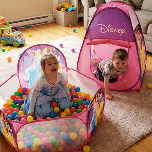 Transform playtime into magical adventures with the Disney Princess Indoor/Outdoor Play House Tent. This versatile play structure features beloved Disney Princess characters, making it perfect for imaginative role-play both inside and outside. Durable construction withstands various weather conditions while the spacious interior provides a cozy retreat for children. Easy to set up and take down, this tent encourages active play and creative storytelling. Ideal for backyard fun, sleepovers, or creating a special hideaway in any room. Give your child a enchanting play space they'll love exploring.